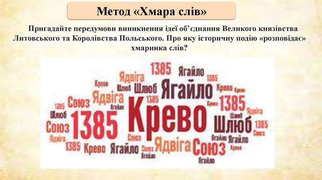 Метод «Хмара слів»Пригадайте передумови виникнення ідеї об’єднання Великого князівства
