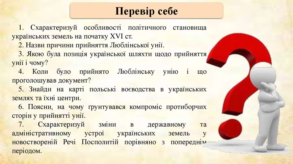 Перевір себе1. Схарактеризуй особливості політичного становища