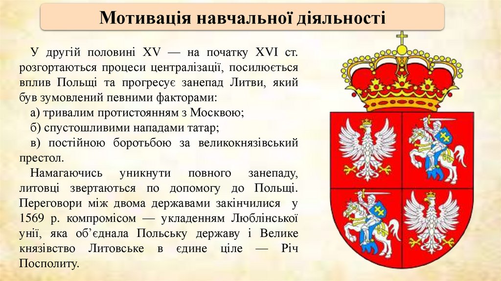 Тема урокуЛюблінська унія 1569 р. та її вплив