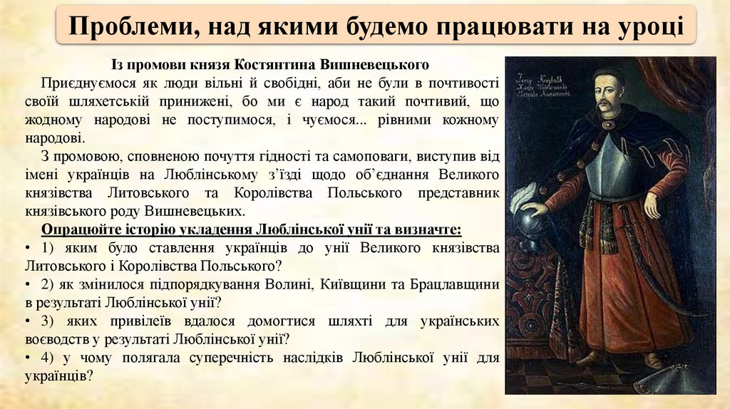 Проблеми, над якими будемо працювати на уроціІз промови князя Костянтина Вишневецького
