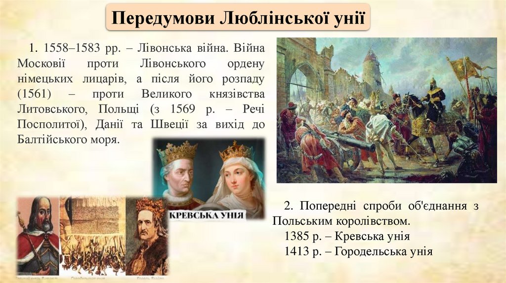Передумови Люблінської унії1. 1558–1583 рр. – Лівонська війна. Війна