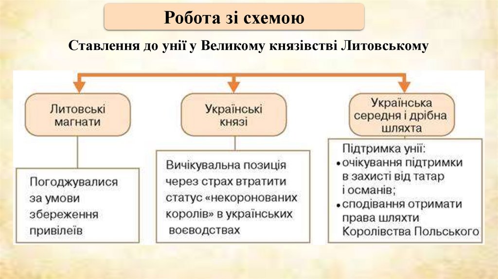 Робота зі схемоюСтавлення до унії у Великому князівстві Литовському