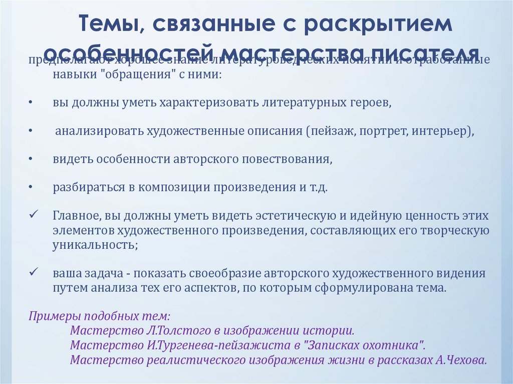 • темы, связанные с раскрытием особенностей мастерства