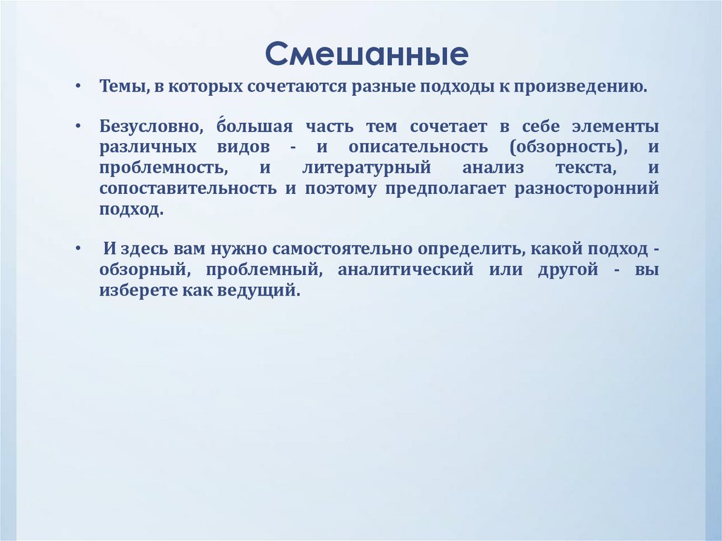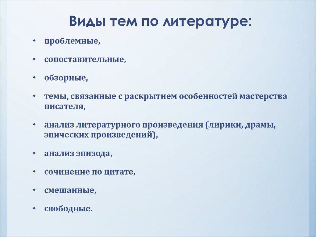 Виды тем по литературе:• проблемные,