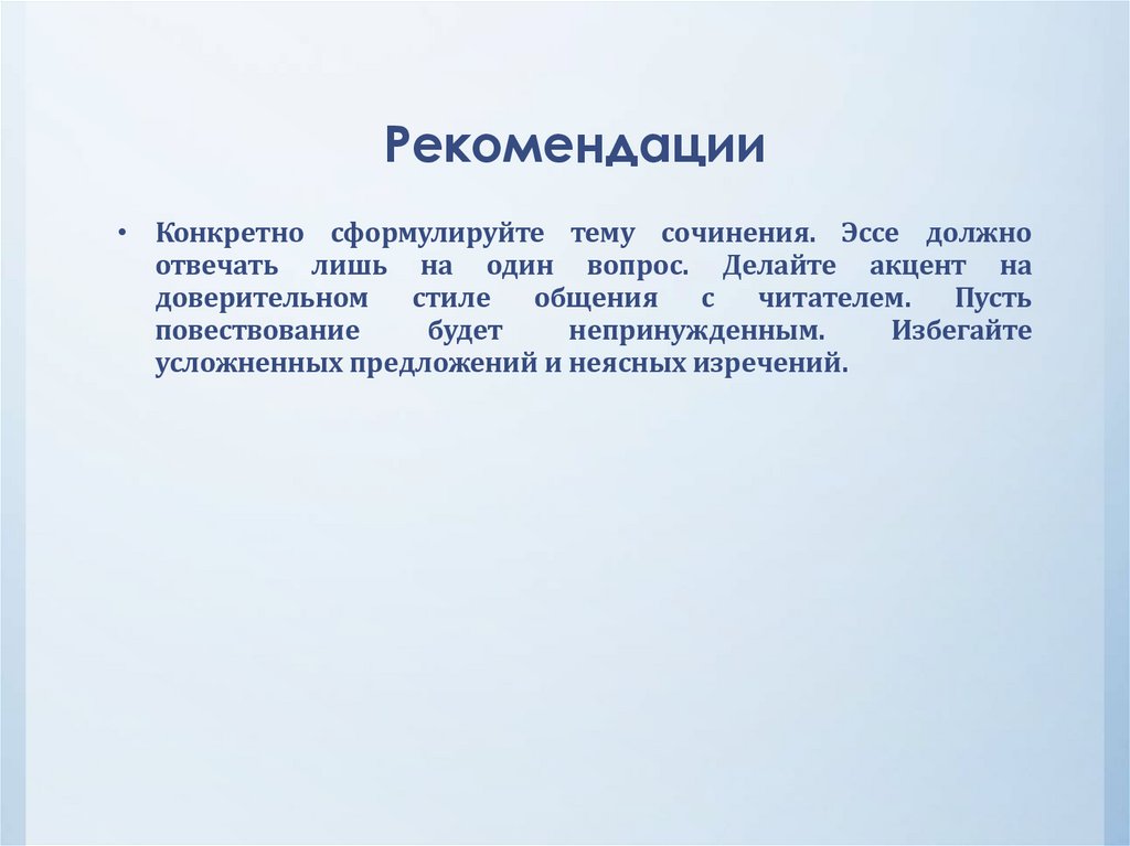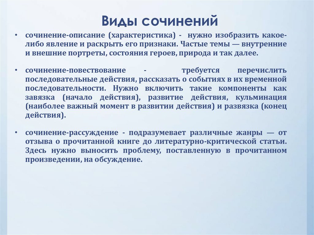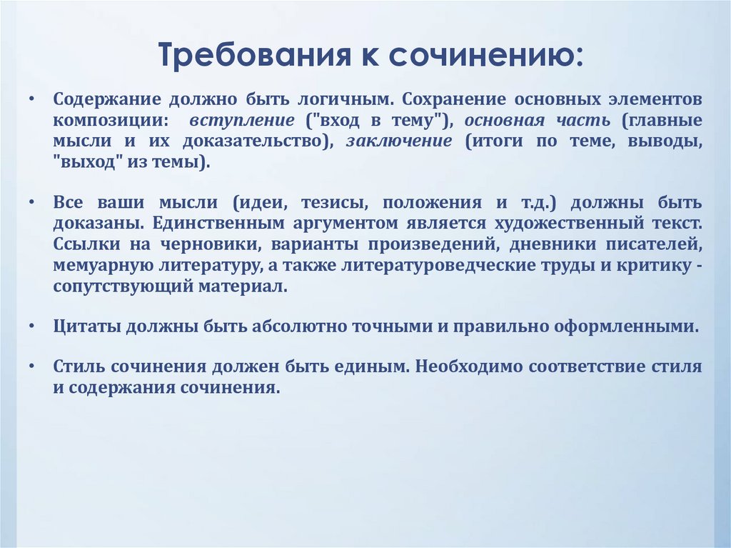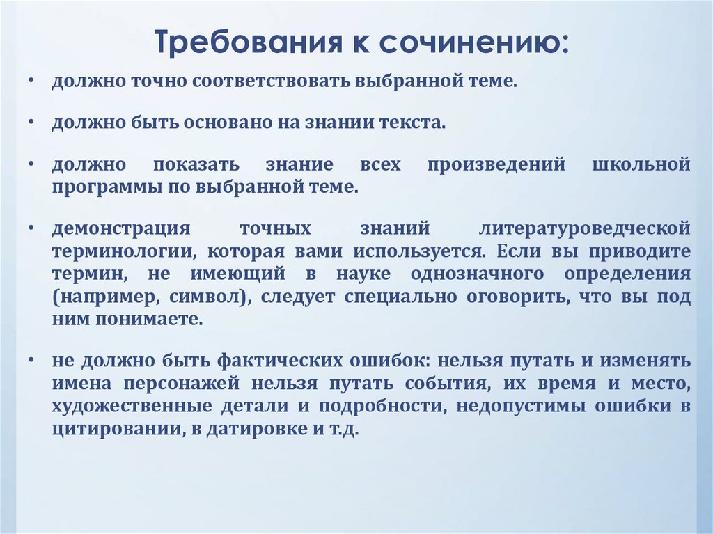 Требования к сочинению:• должно точно соответствовать выбранной теме.