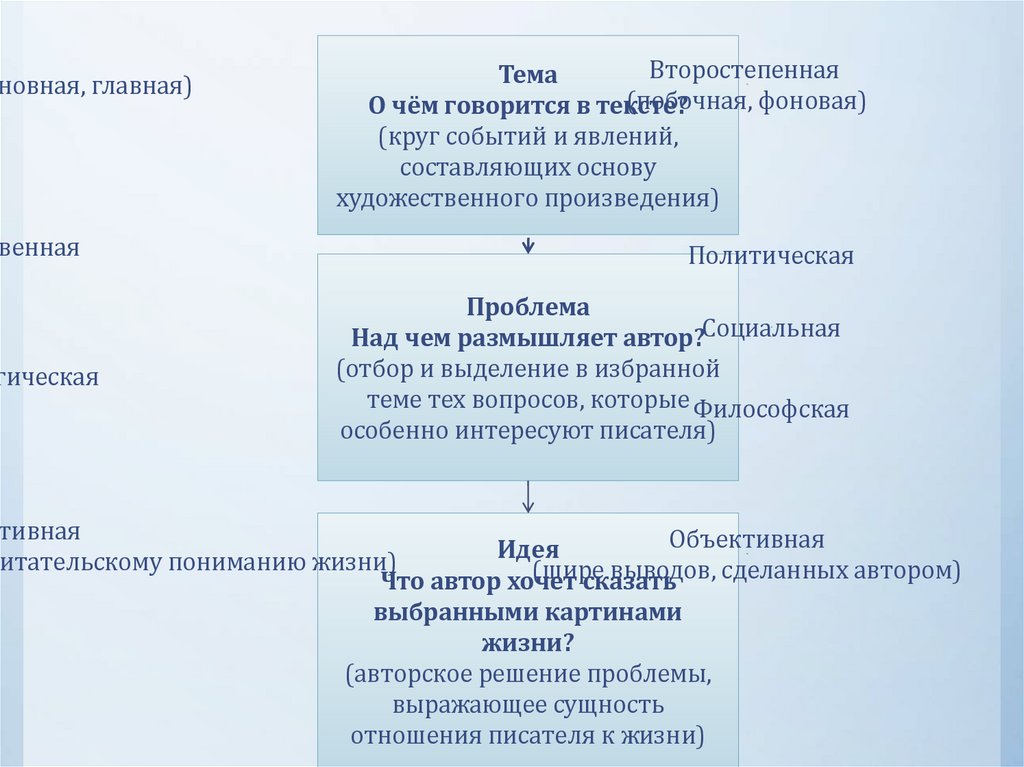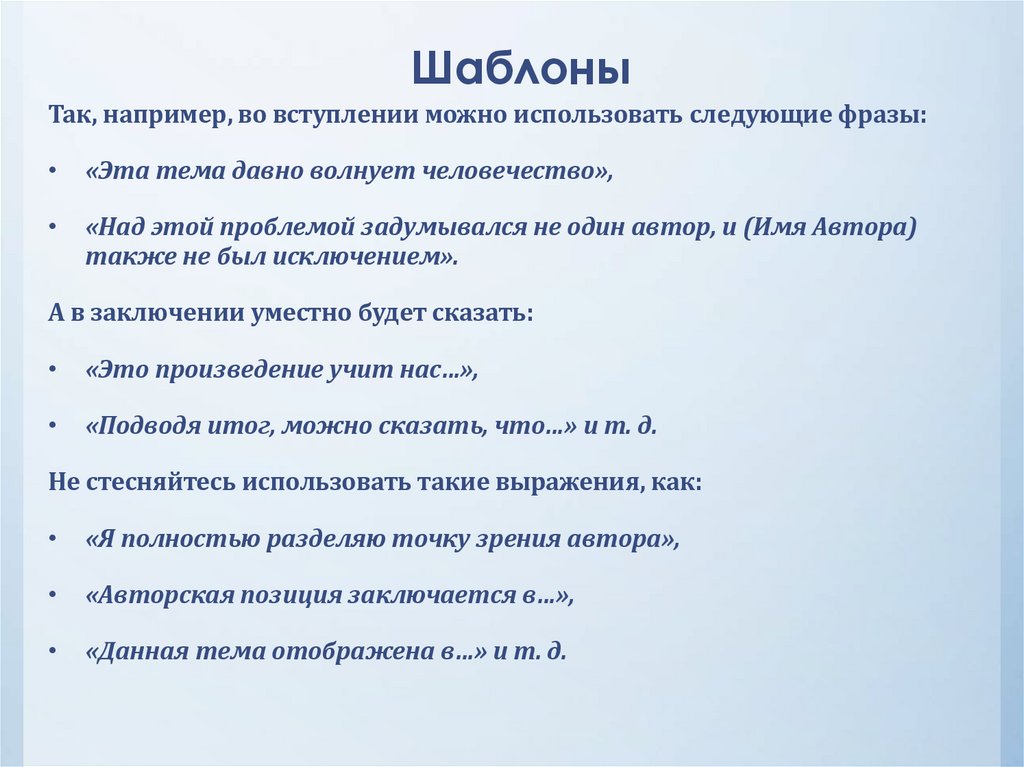 "проблема", "композиция ", "образ", "пейзаж" и т.д., повторите их в заключительных