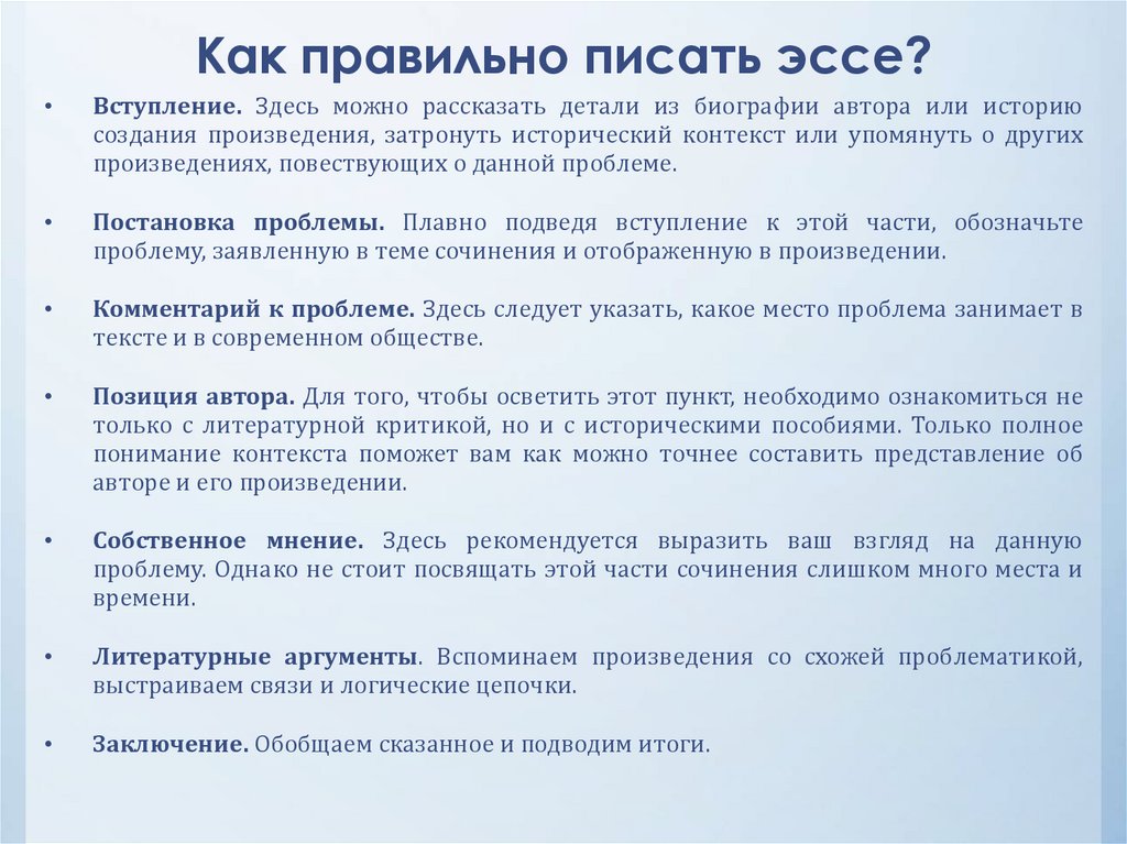значимым и философским вопросам. Эссе пишется по другим