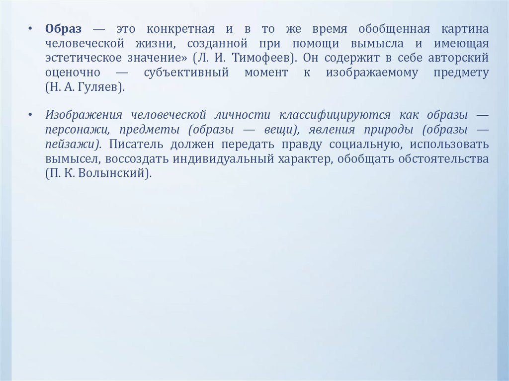 • Образ — это конкретная и в то же время обобщенная картиначеловеческой жизни, созданной при помощи вымысла и имеющая
