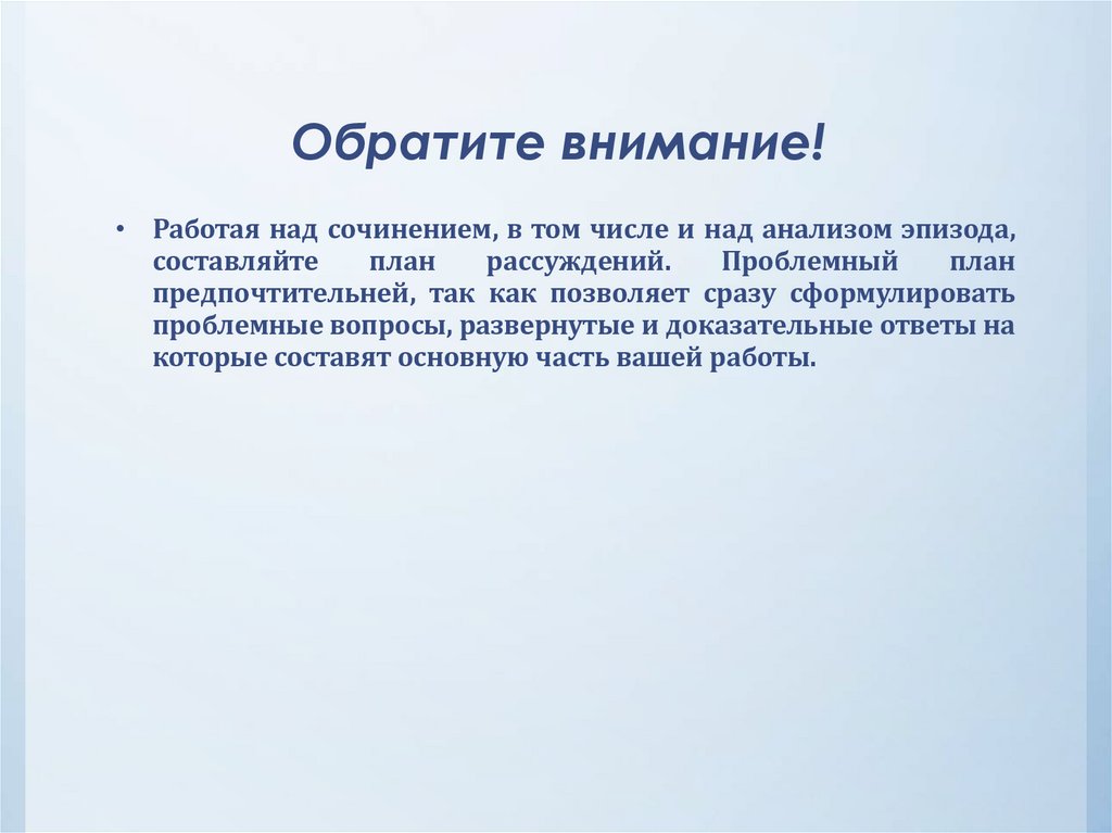 Обратите внимание!• Работая над сочинением, в том числе и над анализом эпизода,