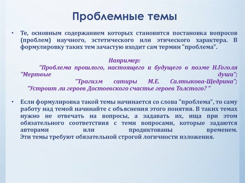 формулировку таких тем зачастую входит сам термин "проблема".