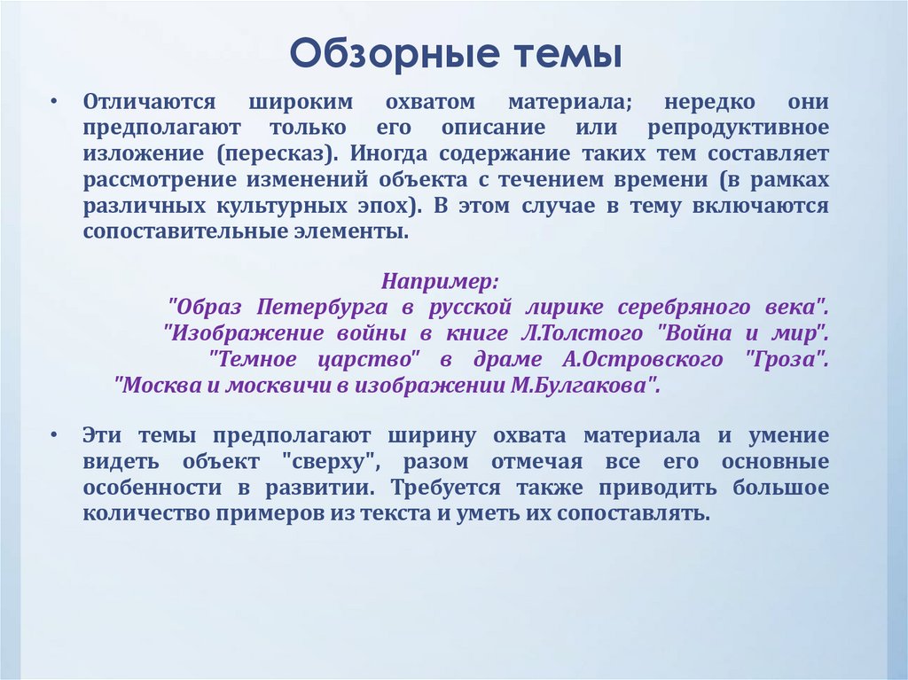 • обзорные,