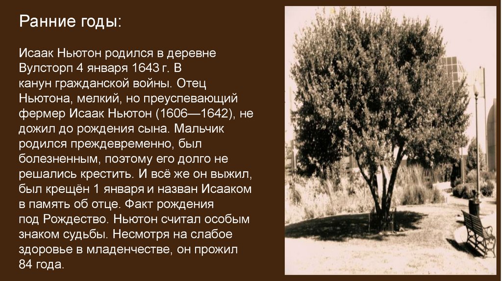 Ранние годы:Исаак Ньютон родился в деревне