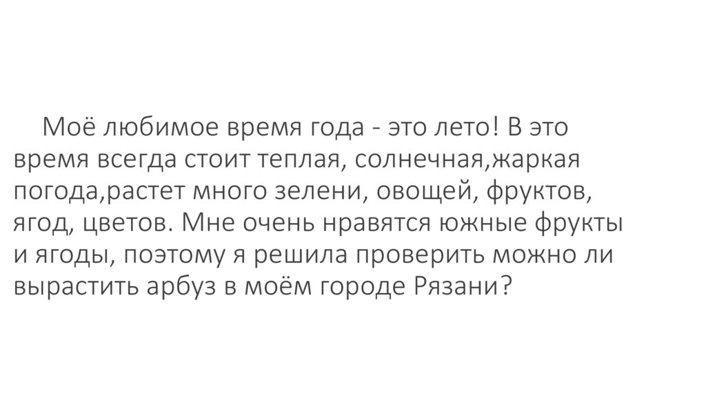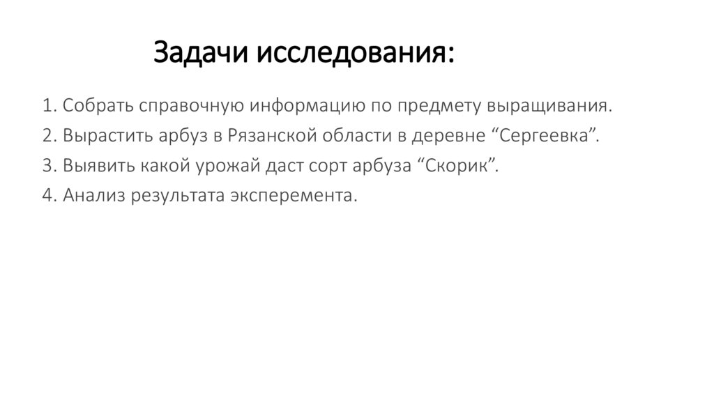 2. Вырастить арбуз в Рязанской области в деревне “Сергеевка”.