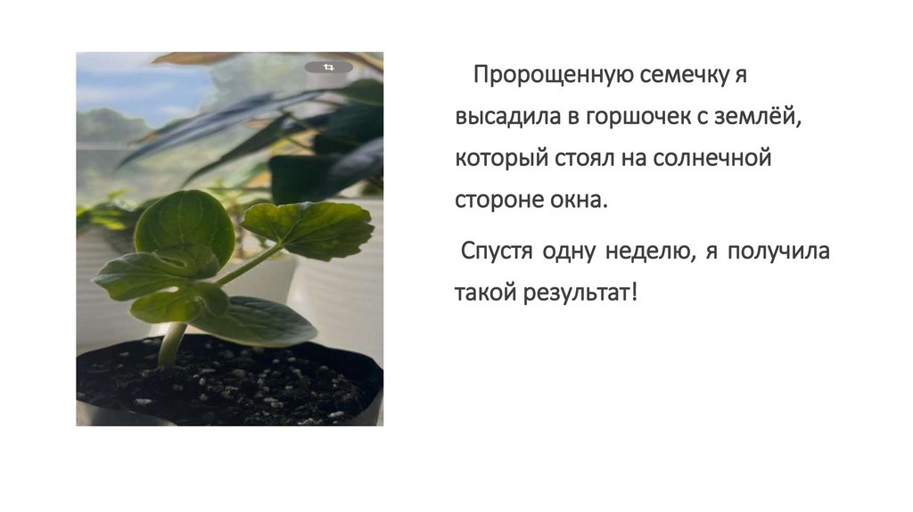 Пророщенную семечку явысадила в горшочек с землёй,