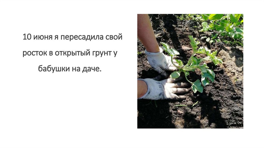 10 июня я пересадила свойросток в открытый грунт у