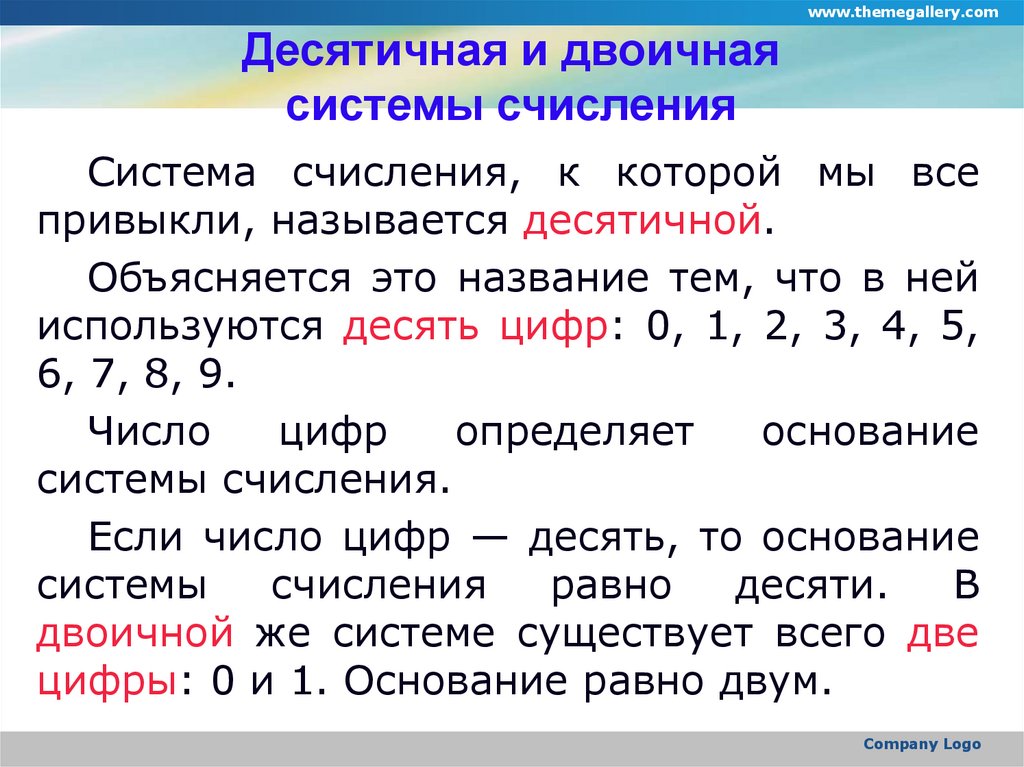 www.themegallery.comДесятичная и двоичная
