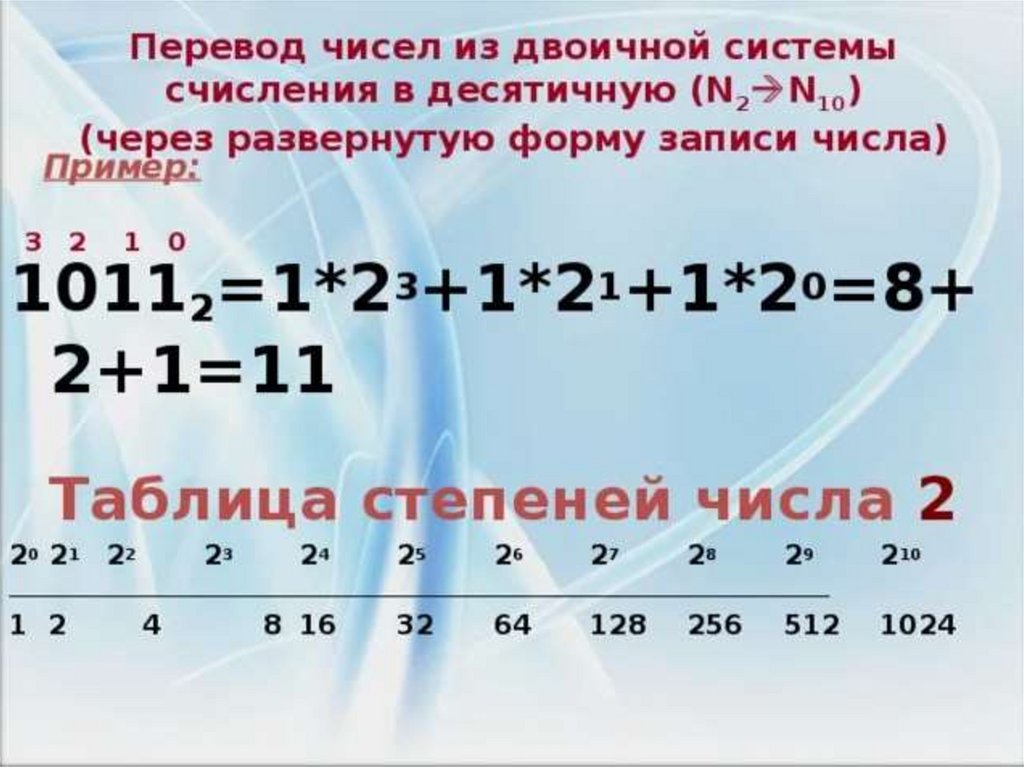 6. Перевод двоичных чисел в десятичную систему
