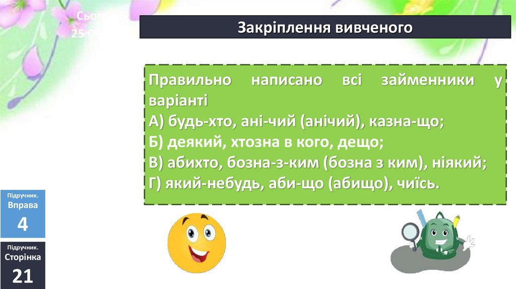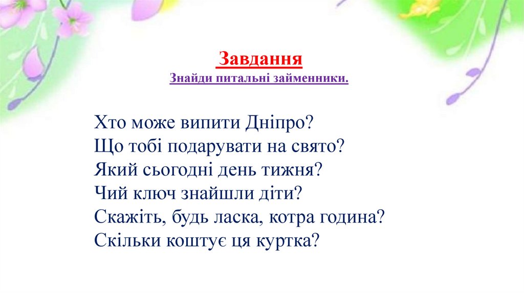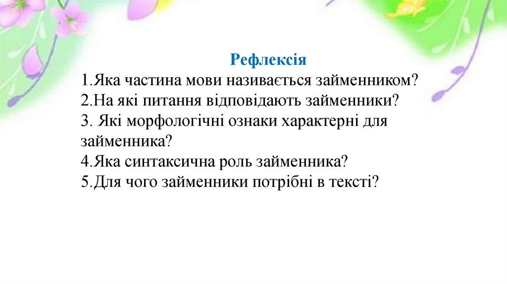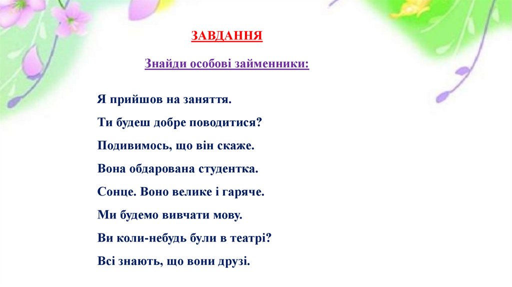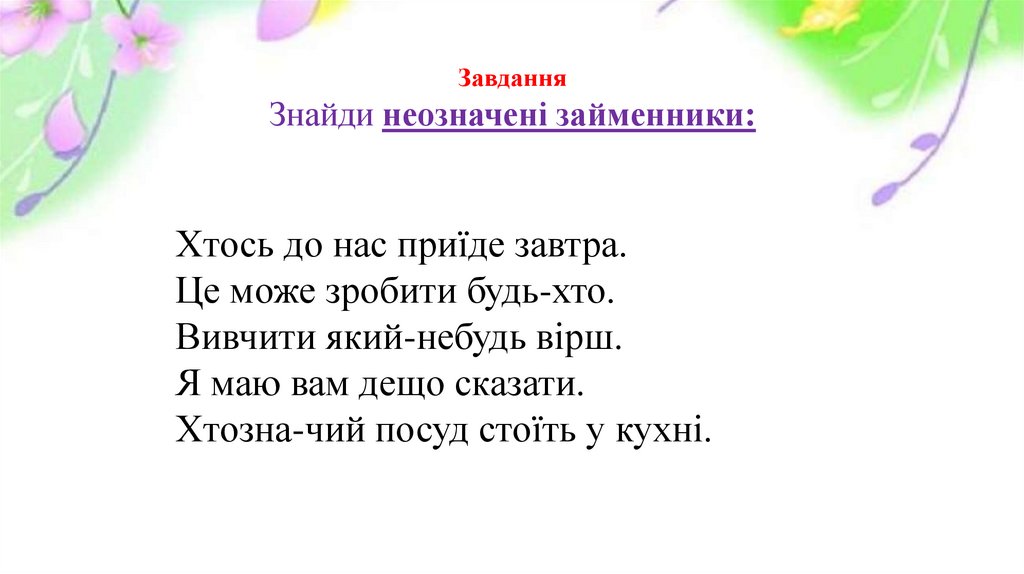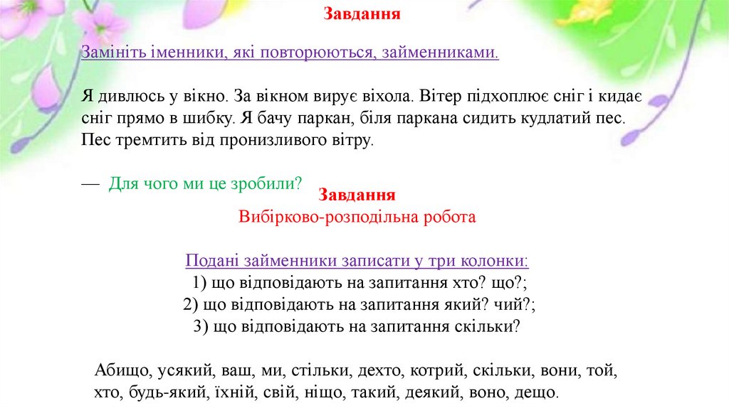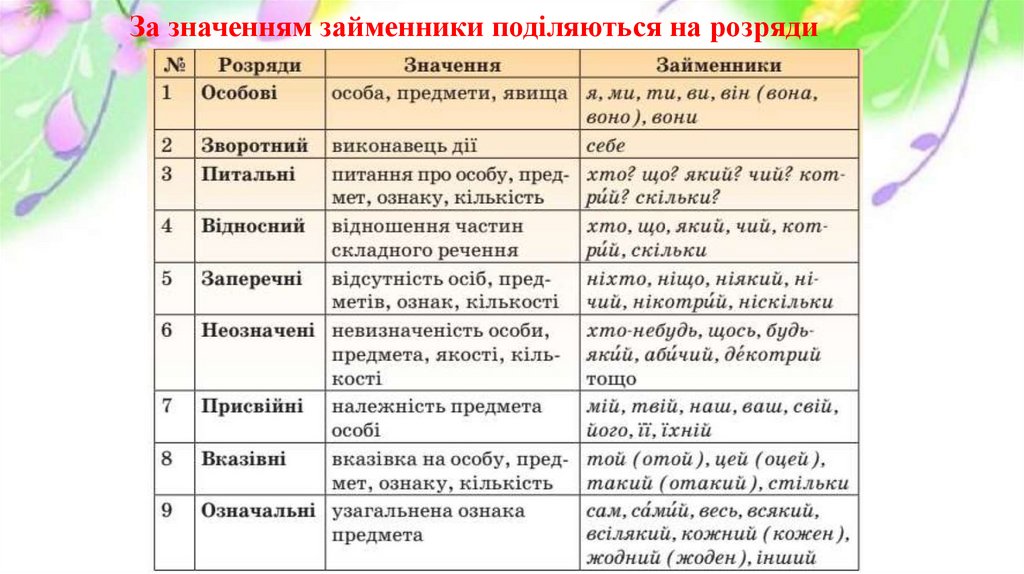 про займенник і його розряди; учаться безпомилково розпізнавати, до