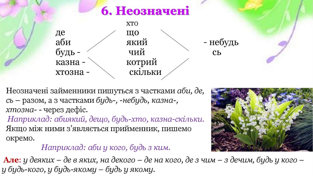 хто, будь-який, їхній, свій, ніщо, такий, деякий, воно, дещо.