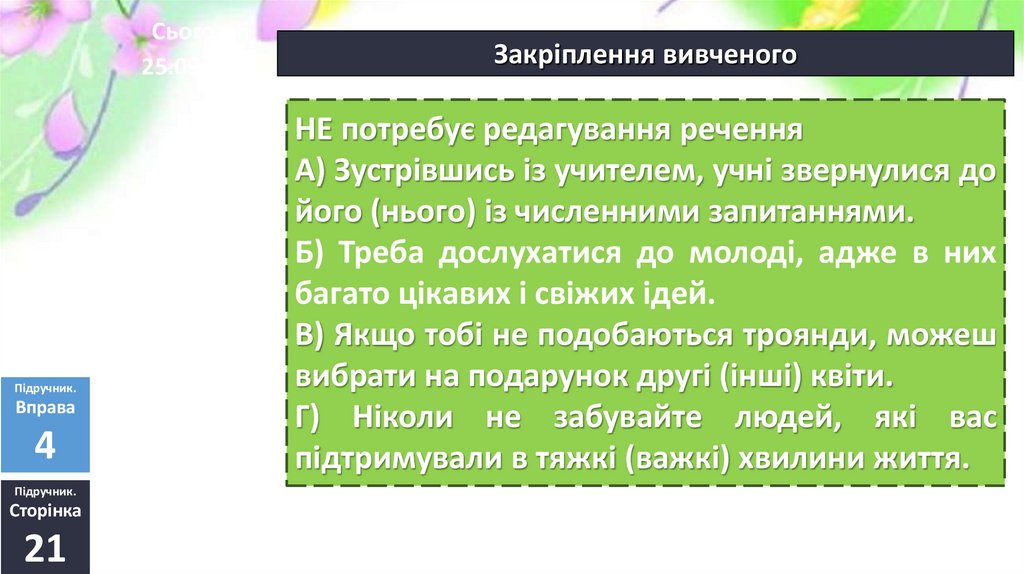 Очікувані результати: учні закріплюють та узагальнюють знання