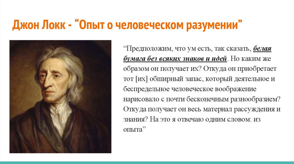 Джон Локк - “Опыт о человеческом разумении”“Предположим, что ум есть, так сказать, белая