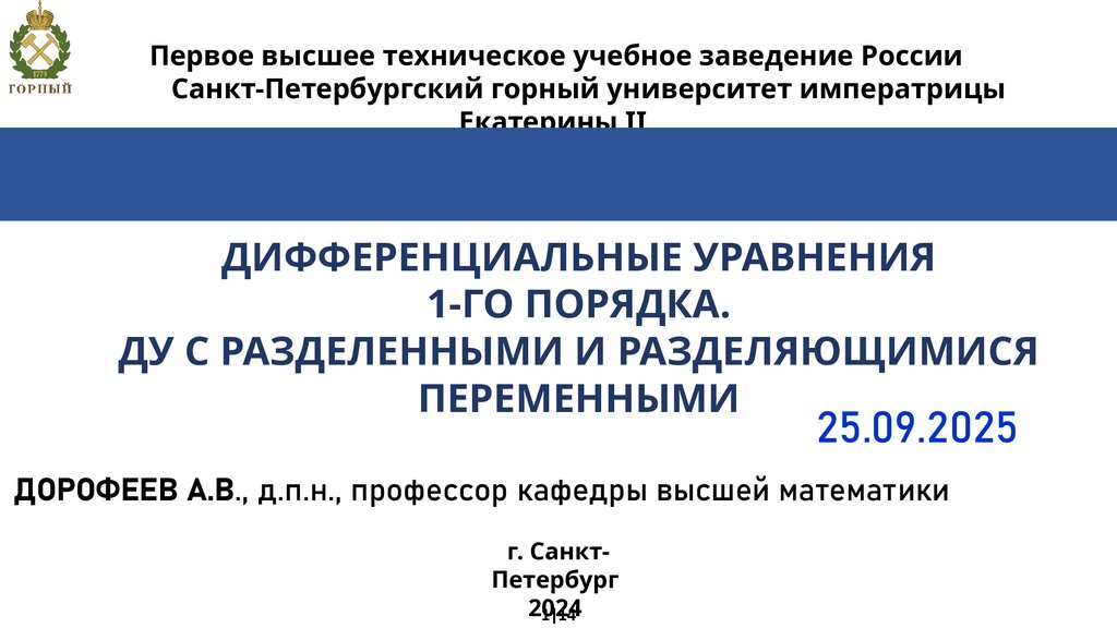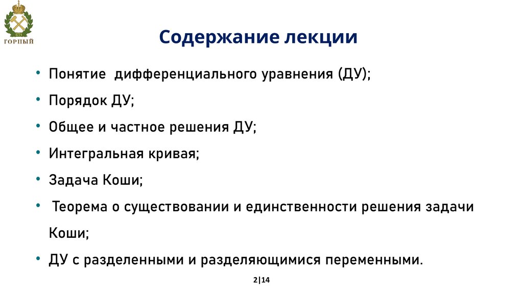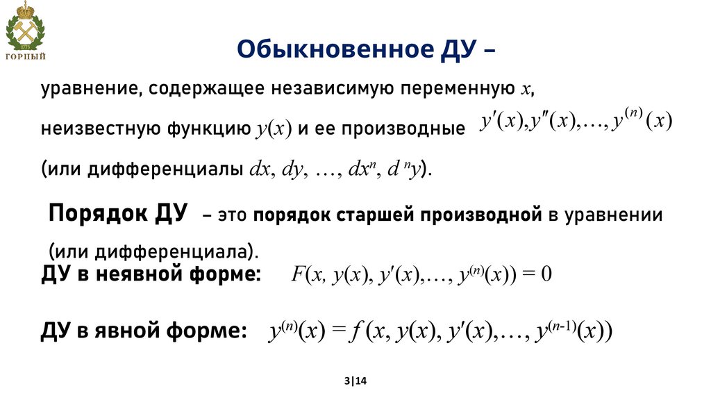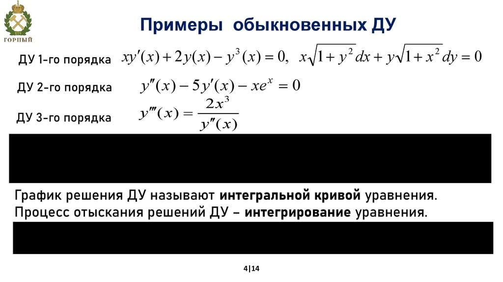 Содержание лекции• Понятие дифференциального уравнения (ДУ);
