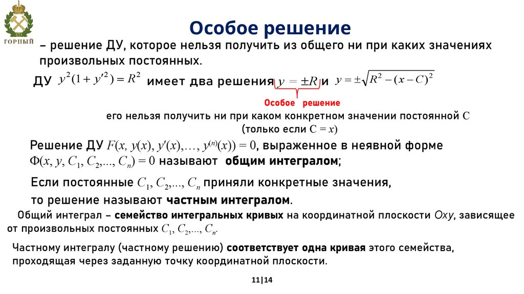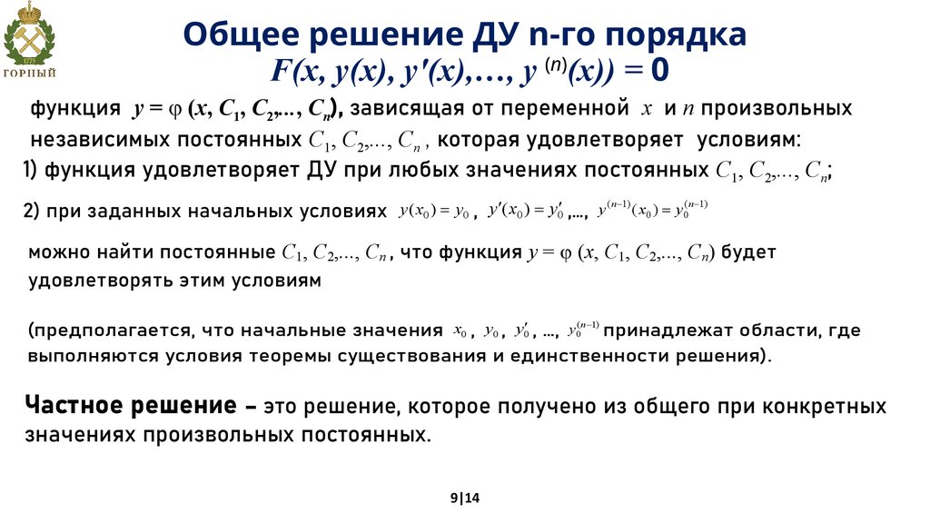 значение С=С0, что функция у = (х, С0) удовлетворяет данному