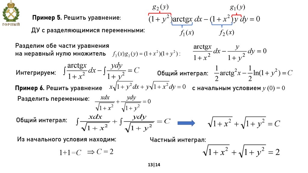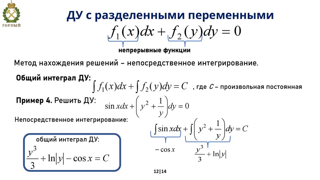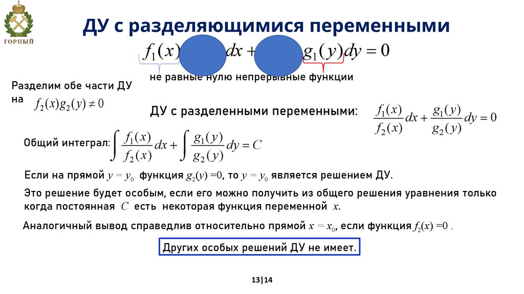 Если решение получено в неявной форме Ф(х,у)=0, то такое выражение называют общим интегралом ДУ