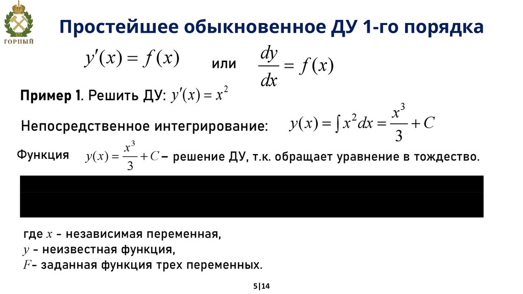 Простейшее обыкновенное ДУ 1-го порядкаdy