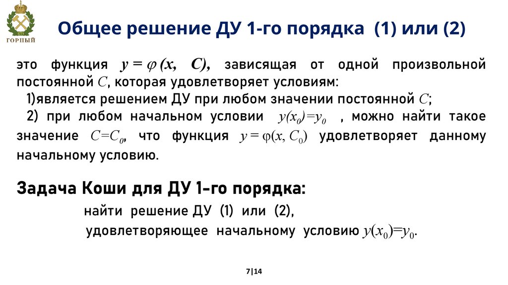 Общее решение ДУ 1-го порядка (1) или (2)это функция у = (х, С), зависящая от одной произвольной