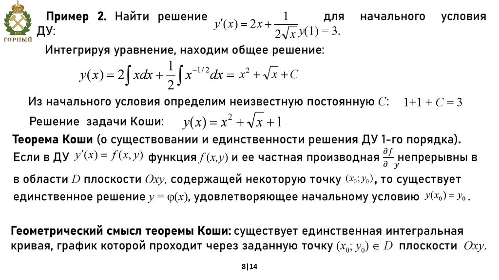 2) при любом начальном условии у(х0)=y0 , можно найти такое