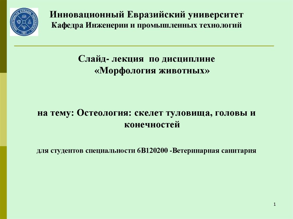 1. Инновационный Евразийский университет Кафедра Инженерии и промышленных технологий