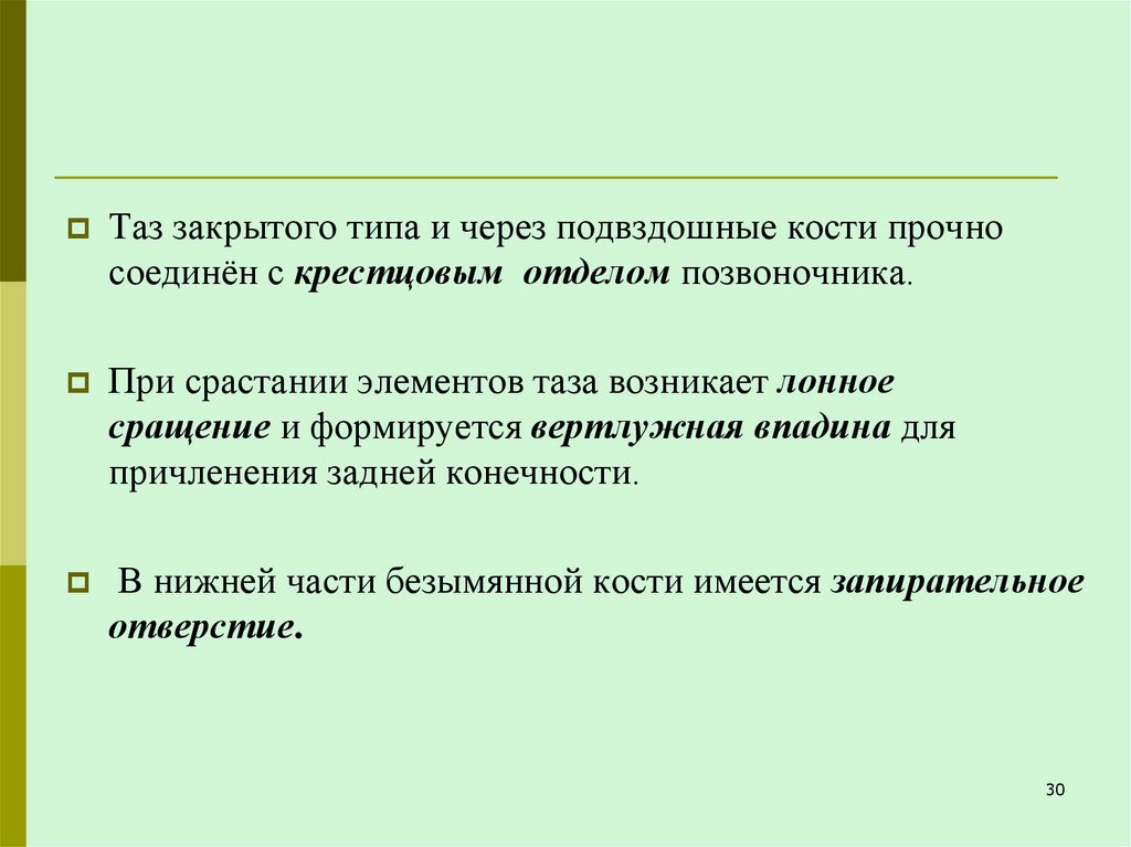 Таз закрытого типа и через подвздошные кости прочносоединён с крестцовым отделом позвоночника.