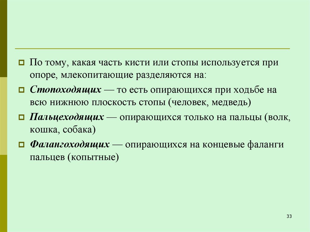 По тому, какая часть кисти или стопы используется приопоре, млекопитающие разделяются на: