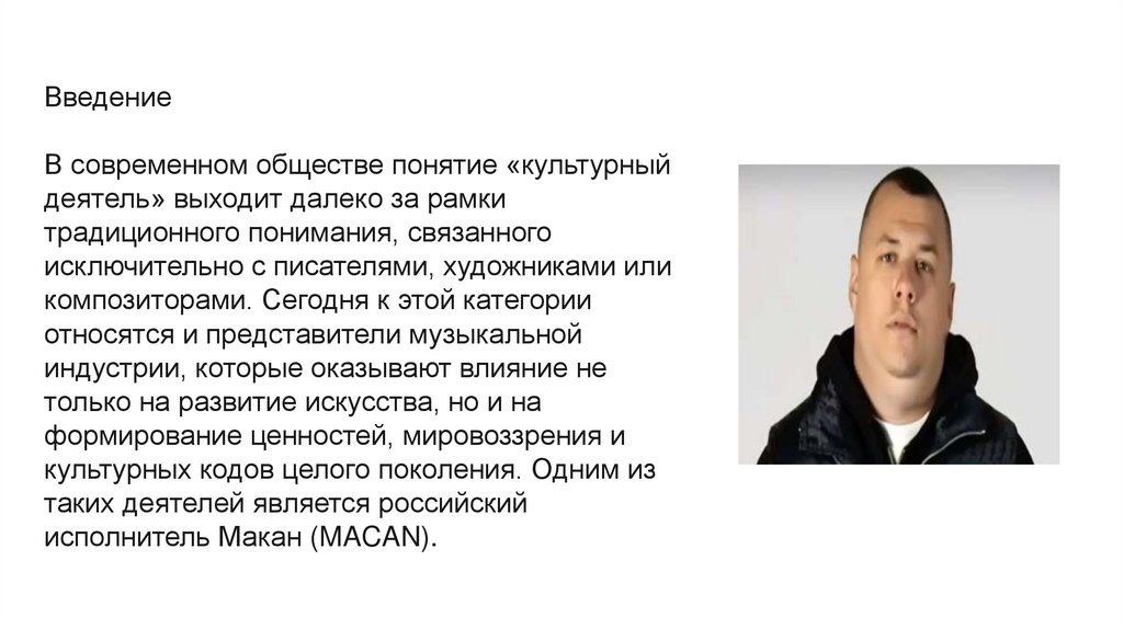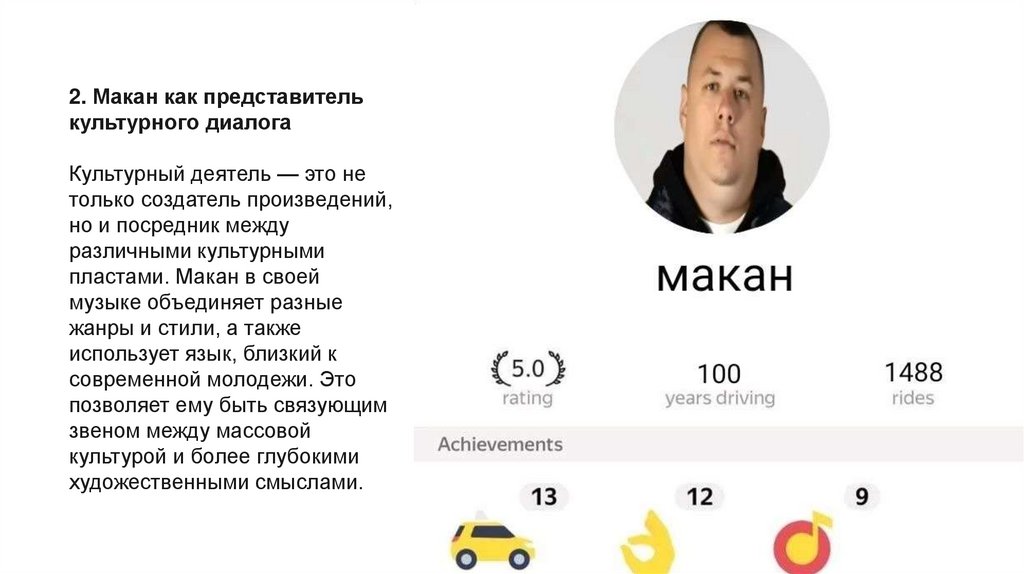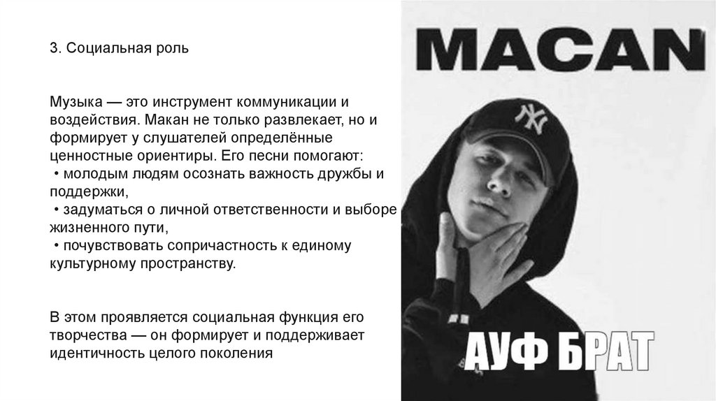 1. Творчество как форма культурного влиянияМузыка Макана объединяет в себе элементы рэпа,