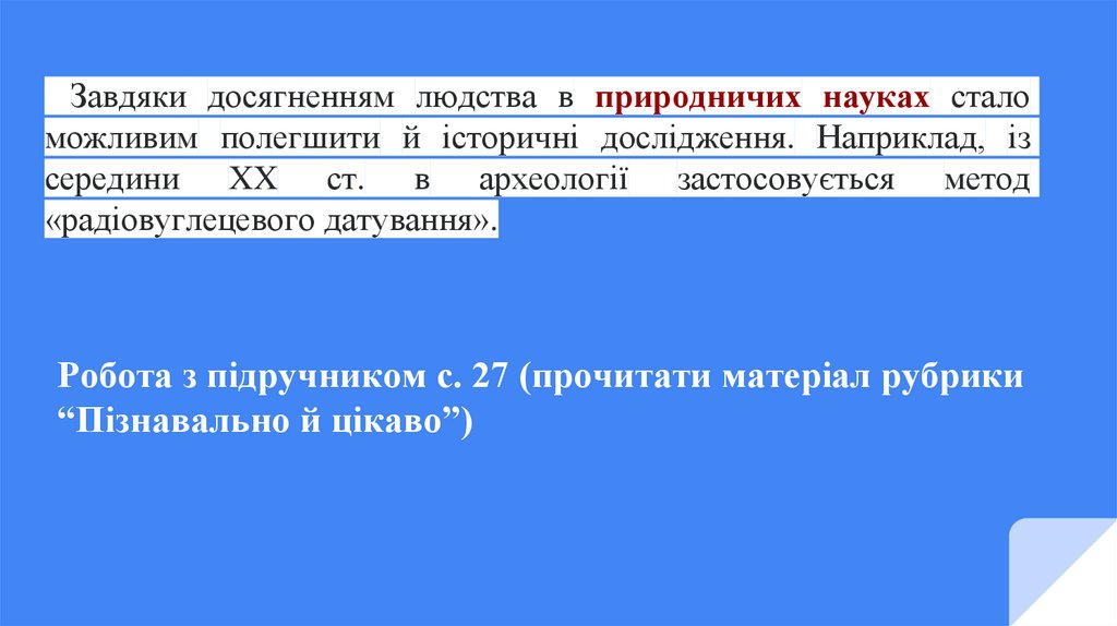 Робота з підручником с. 27 (прочитати матеріал рубрики