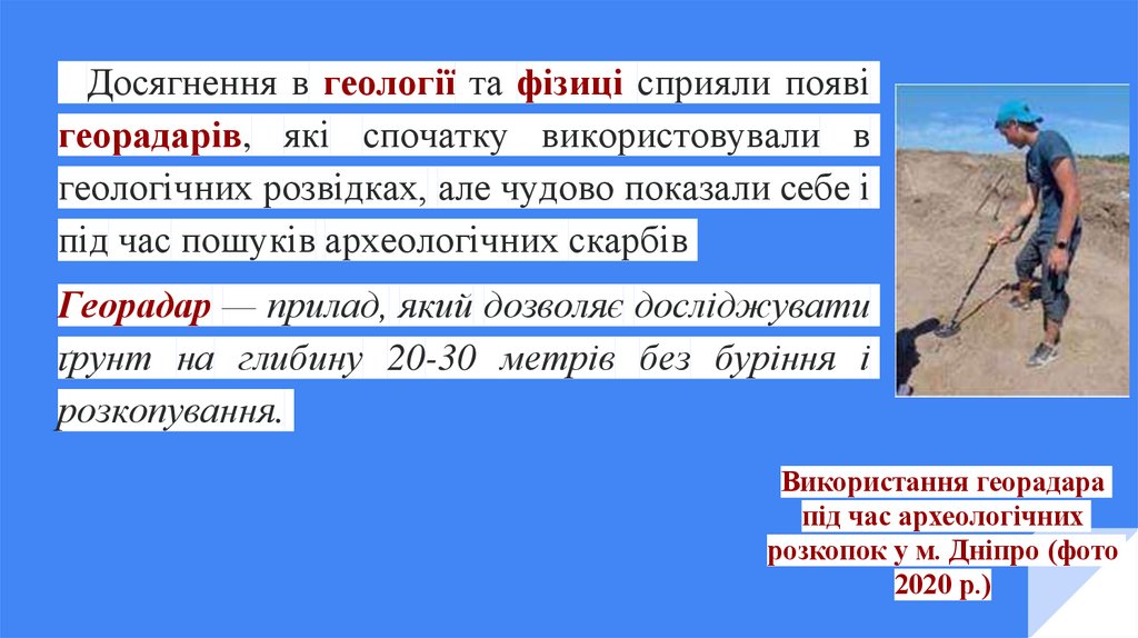 Досягнення в геології та фізиці сприяли появігеорадарів, які спочатку використовували в