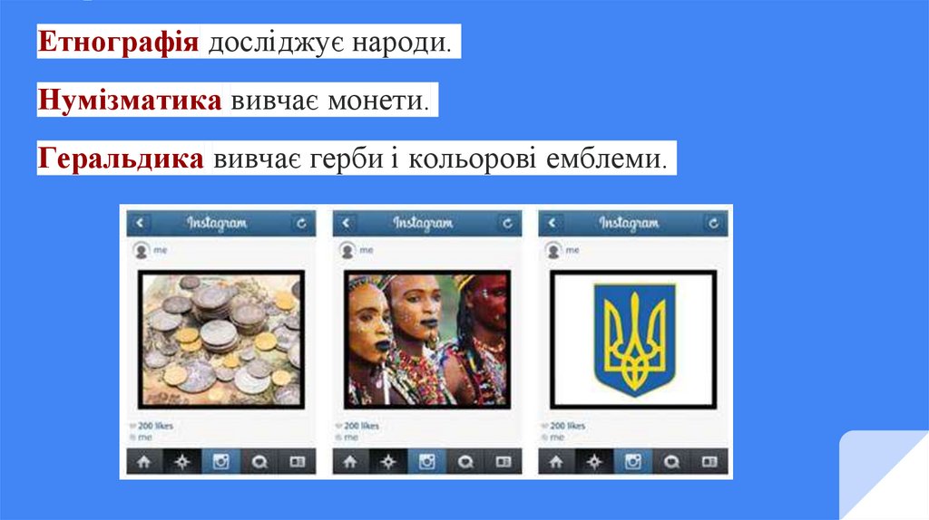 Етнографія досліджує народи.Нумізматика вивчає монети.