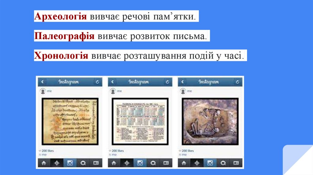 Археологія вивчає речові пам’ятки.Палеографія вивчає розвиток письма.