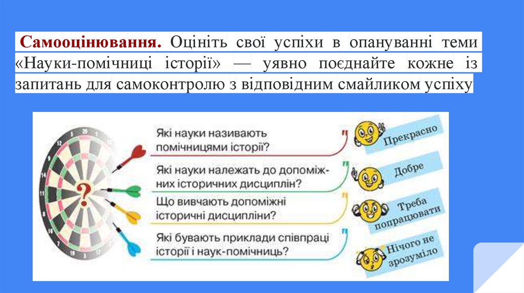 Самооцінювання. Оцініть свої успіхи в опануванні теми«Науки-помічниці історії» — уявно поєднайте кожне із