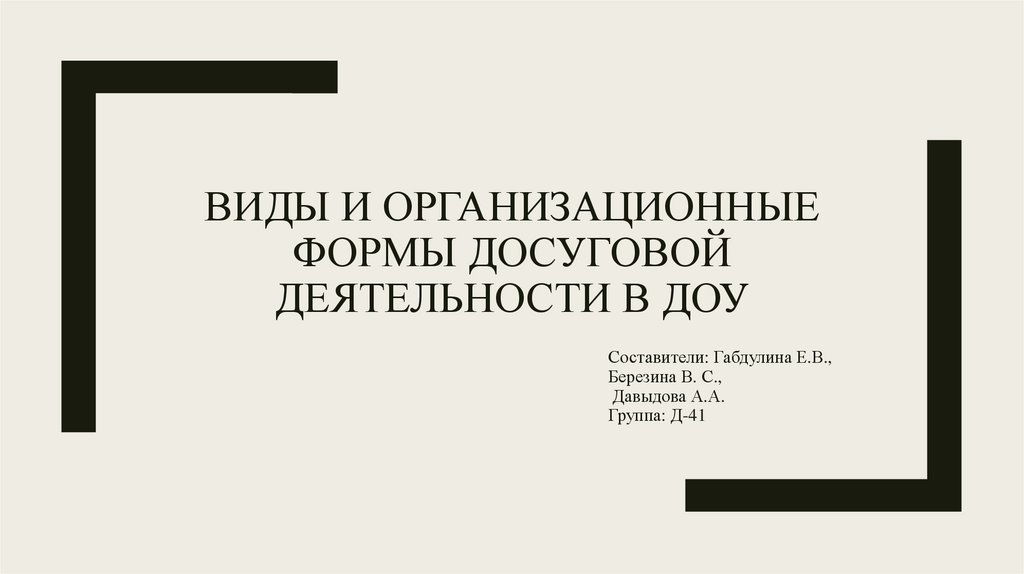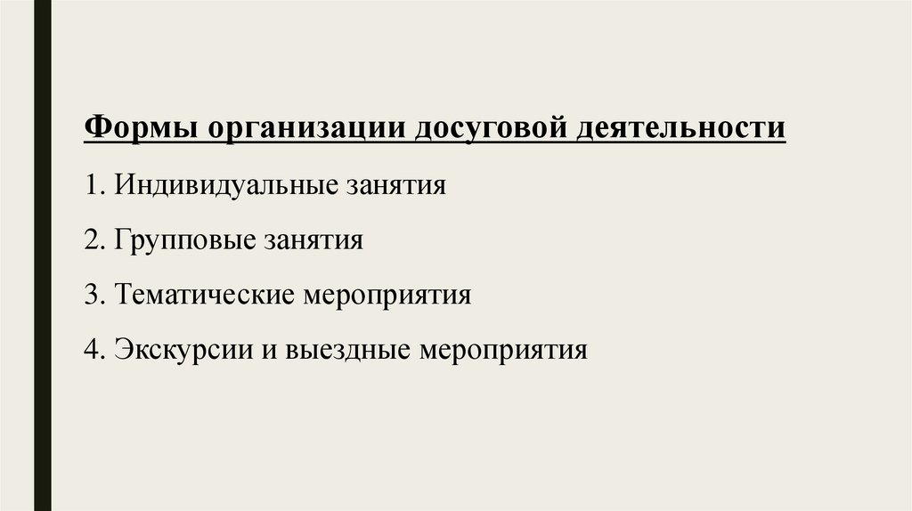 ВИДЫ И ОРГАНИЗАЦИОННЫЕФОРМЫ ДОСУГОВОЙ