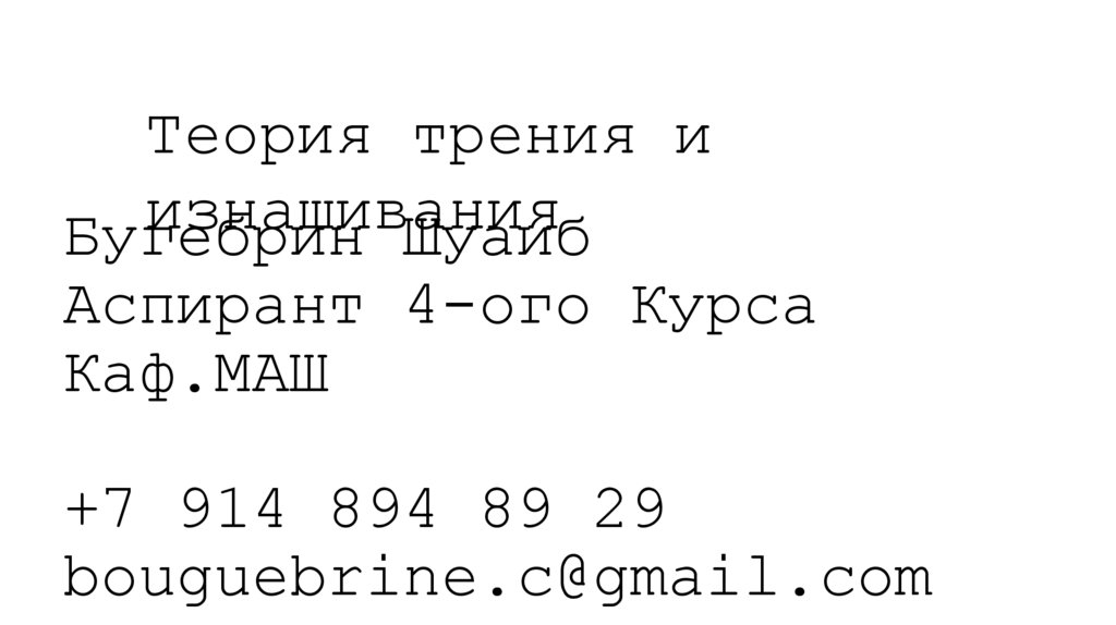 1. Бугебрин Шуаиб Аспирант 4-ого Курса Каф.МАШ +7 914 894 89 29 bouguebrine.c@gmail.com