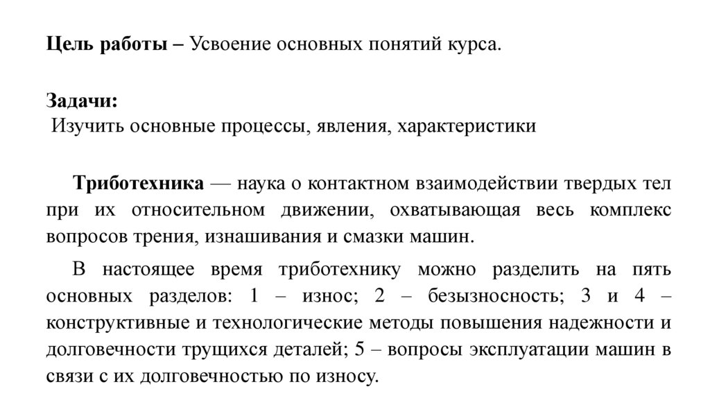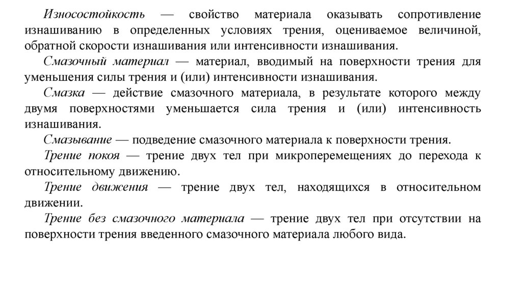 изнашивания, смазки, методам смазывания и смазочным материалам. К общим понятиям