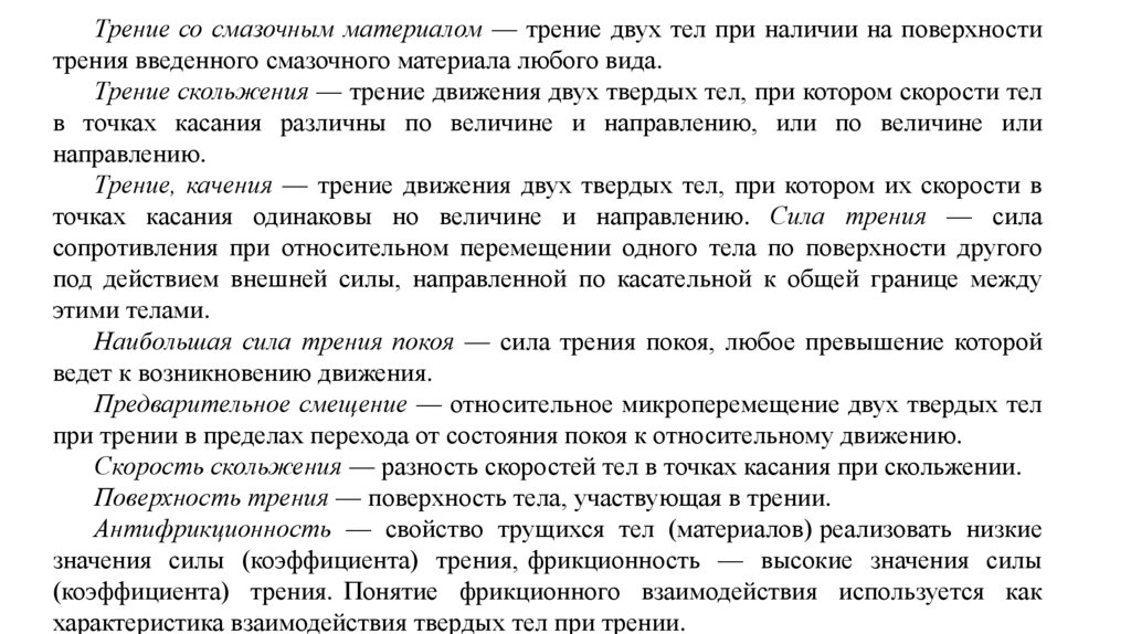 изнашивание и смазка. Термины и определения» включает 107 терминов по видам трения,