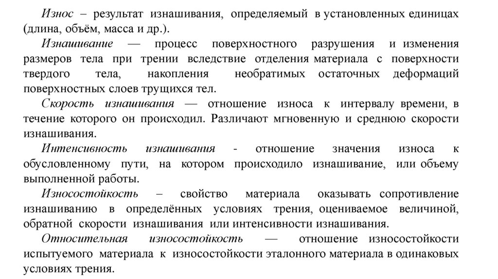 Износ – результат изнашивания, определяемый в установленных единицах(длина, объём, масса и др.).
