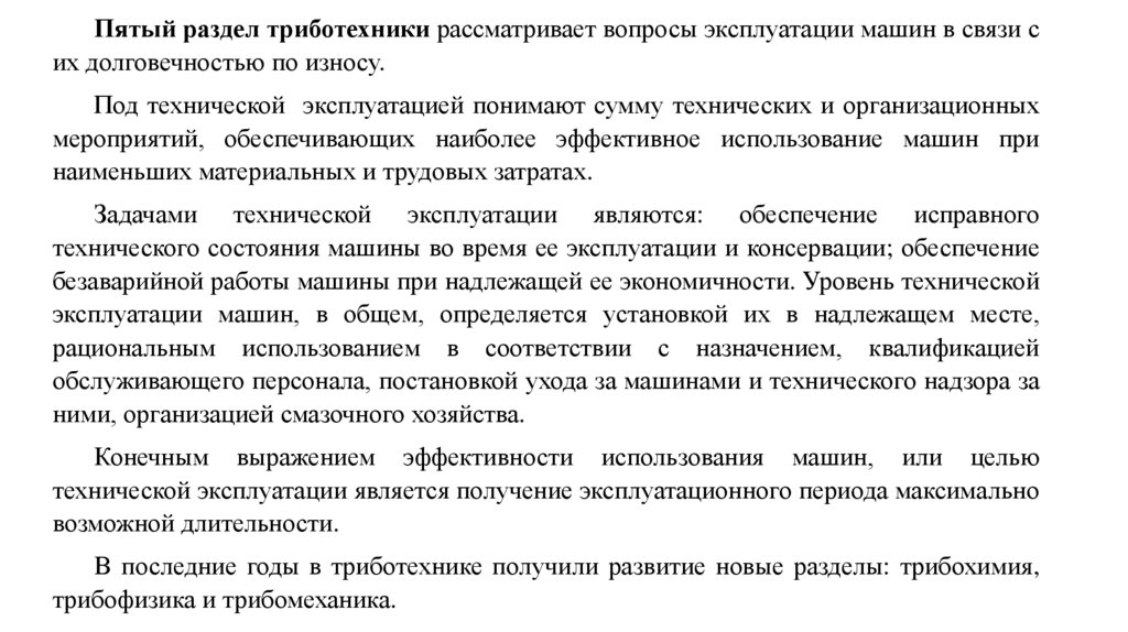 долговечности трущихся деталей; 5 – вопросы эксплуатации машин в