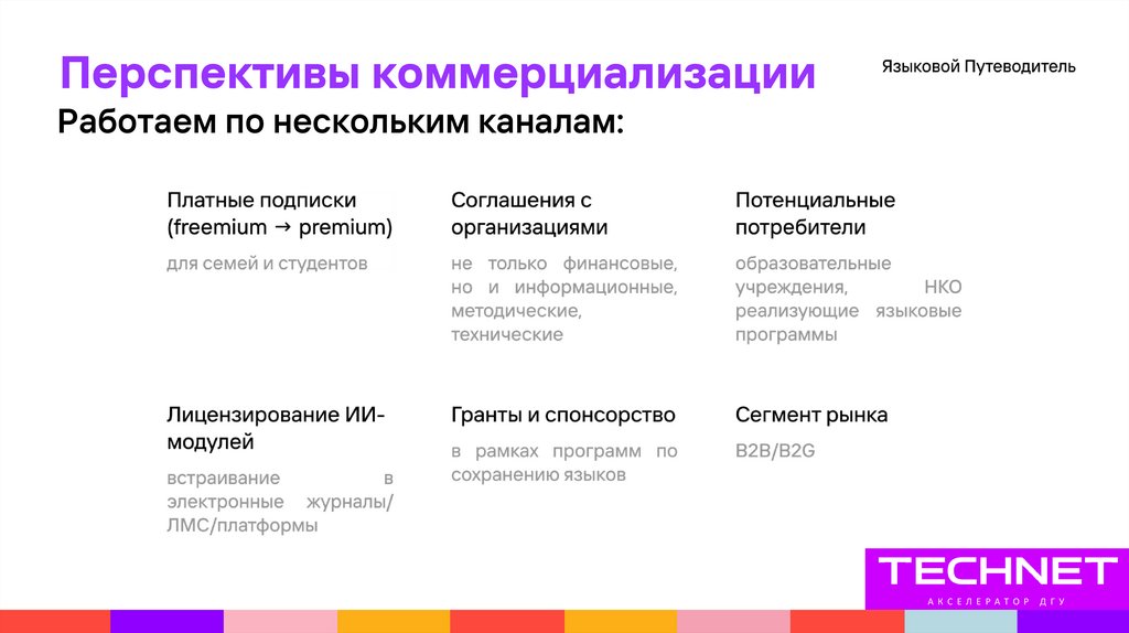 Перспективы коммерциализацииРаботаем по нескольким каналам: