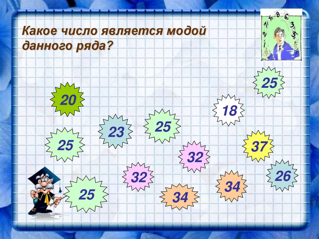 3. Пример 1. Найдите среднее арифметическое чисел 23; 18; 25; 20; 25; 25; 32; 37; 34; 26; 34; 25.