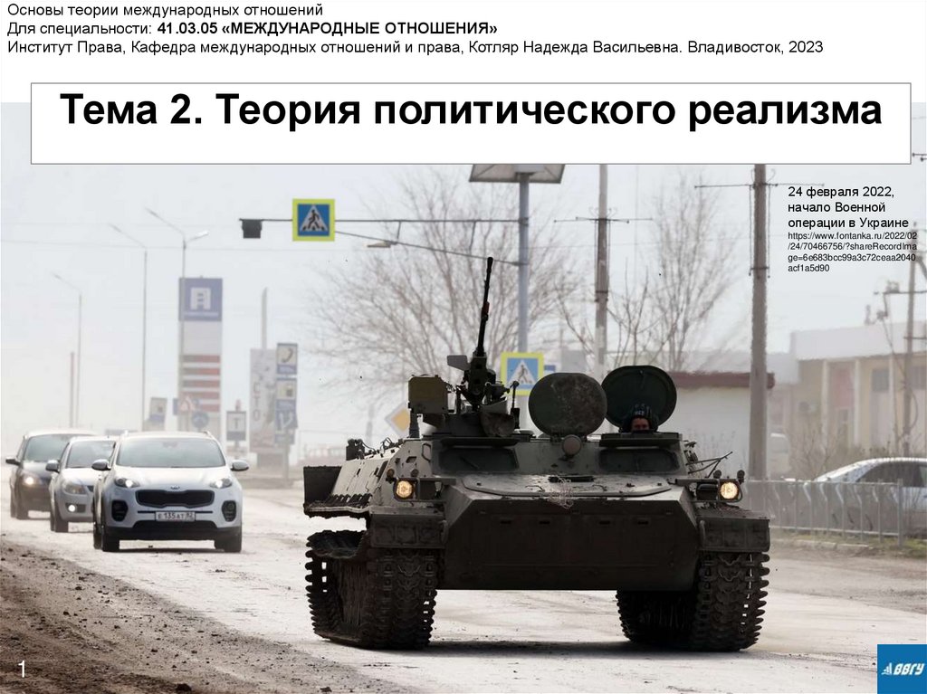 международных отношений и права, Котляр Надежда Васильевна. Владивосток, 2023Тема 2. Теория политического реализма