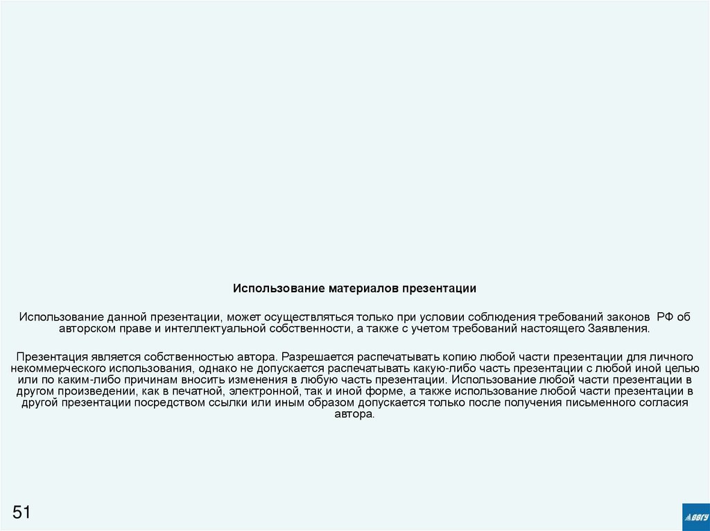 Использование материалов презентацииИспользование данной презентации, может осуществляться только при условии соблюдения требований законов РФ об